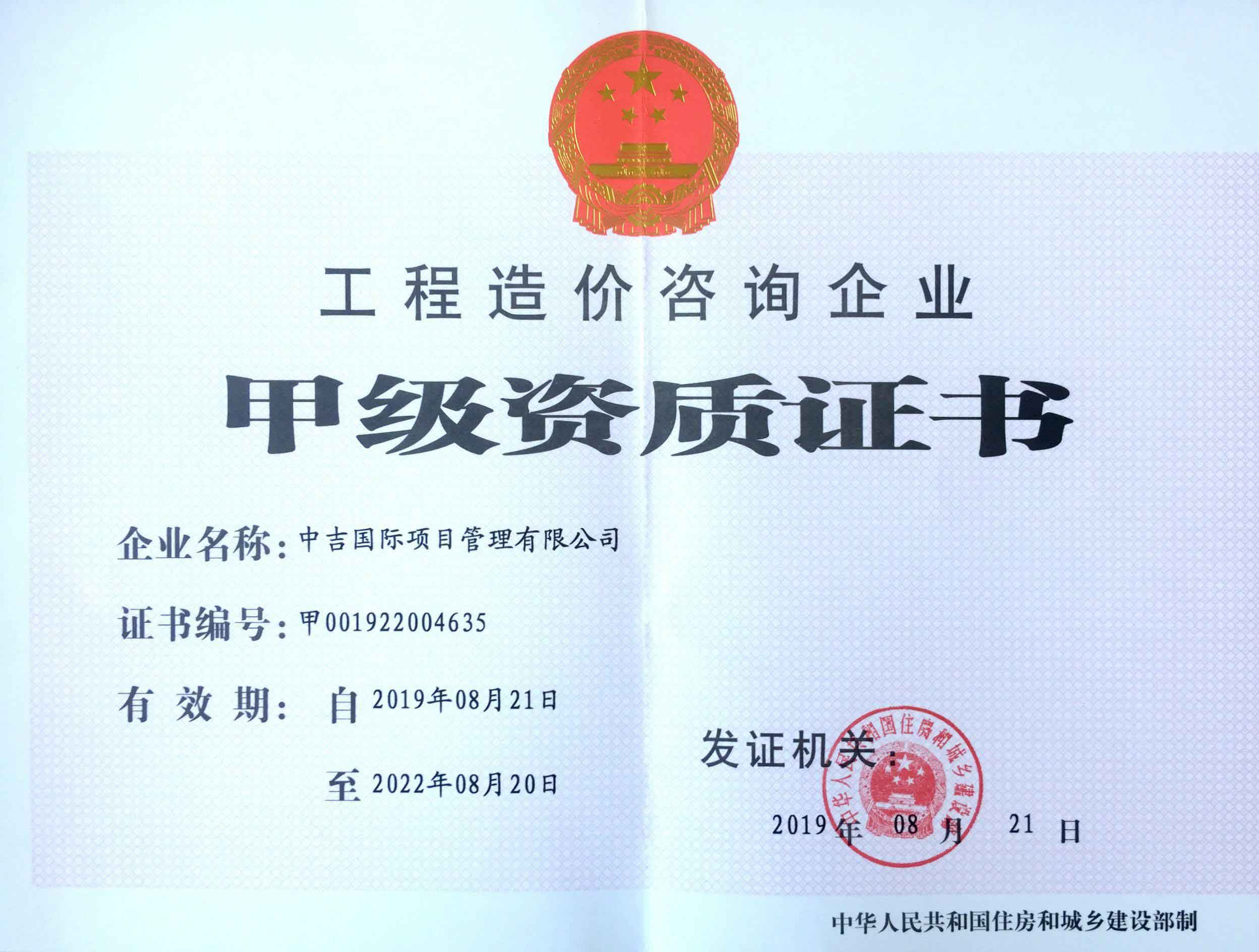 工程造價咨詢企業甲級資質 |